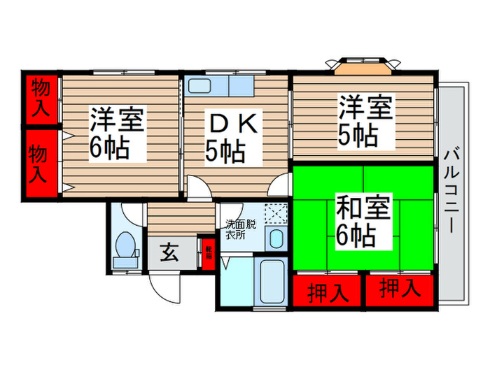 | 間取り/専有面積 | 3DK(ダイニングキッチン4.9帖 洋室6帖 洋室4.9帖 和室6畳)/53㎡ |